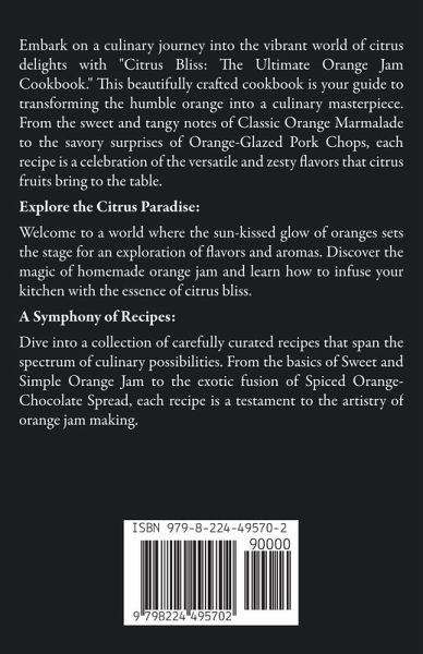 Embark on a culinary journey into the vibrant world of citrus delights with "Citrus Bliss: The Ultimate Orange Jam Cookbook." This beautifully crafted cookbook is your guide to transforming the humble orange into a culinary masterpiece. From the sweet and tangy notes of Classic Orange Marmalade to the savory surprises of Orange-Glazed Pork Chops, each recipe is a celebration of the versatile and zesty flavors that citrus fruits bring to the table. Explore the Citrus Paradise: Welcome to a world where the sun-kissed glow of oranges sets the stage for an exploration of flavors and aromas. Discover the magic of homemade orange jam and learn how to infuse your kitchen with the essence of citrus bliss. A Symphony of Recipes: Dive into a collection of carefully curated recipes that span the spectrum of culinary possibilities. From the basics of Sweet and Simple Orange Jam to the exotic fusion of Spiced Orange-Chocolate Spread, each recipe is a testament to the artistry of orange jam making.