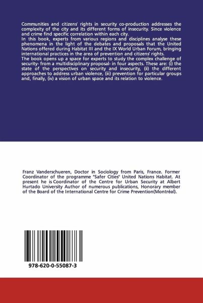 Communities and citizens' rights in security co-production addresses the complexity of the city and its different forms of insecurity. Since violence and crime find specific correlation within each city. In this book, experts from various regions and disciplines analyse these phenomena in the light of the debates and proposals that the United Nations offered during Habitat III and the IX World Urban Forum, bringing international practices in the area of prevention and citizens' rights. The book opens up a space for experts to study the complex challenge of security- from a multidisciplinary proposal- in four aspects. These are: (i) the state of the perspectives on security and insecurity, (ii) the different approaches to address urban violence, (iii) prevention for particular groups and, finally, (iv) a vision of urban space and its relation to violence.
