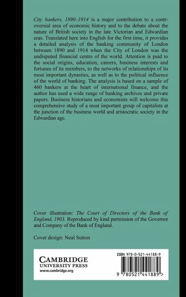 City bankers, 1890-1914 is a major contribution to a controversial area of economic history and to the debate about the nature of British society in the late Victorian and Edwardian eras. Translated here into English for the first time, it provides a detailed analysis of the banking community of London between 1890 and 1914 when the City of London was the undisputed financial centre of the world. Attention is paid to the social origins, education, careers, business interests and fortunes of its members, to the networks of relationships of its most important dynasties, as well as to the political influence of the world of banking. The analysis is based on a sample of 460 bankers at the heart of international finance, and the author has used a wide range of banking archives and private papers. Business historians and economists will welcome this comprehensive study of a most important group of capitalists at the junction of the business world and aristocratic society in the Edwardian age.