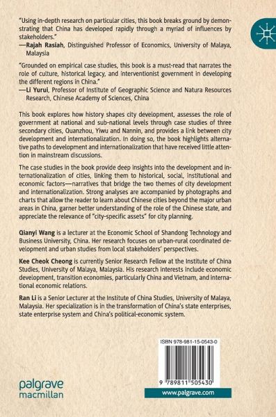 This book explores how history shapes city development, assesses the role of government at national and sub-national levels through case studies of three secondary cities, Quanzhou, Yiwu and Nannin, and provides a link between city development and internationalization. In doing so, the book highlights alternative paths to development and internationalization that have received little attention in mainstream discussions.