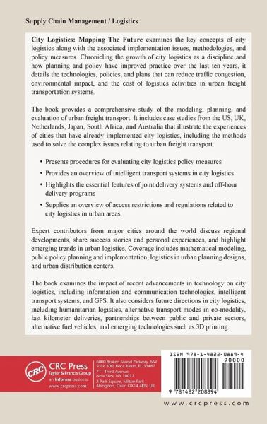 Introduction. Partnerships among Stakeholders. Role of the Public Sector. Urban Planning with City Logistics. E-commerce and City Logistics Solution. Modeling . Evaluating City Logistics Schemes. Urban Distribution Centers. Intelligent Transport Systems in City Logistics. Off-Hour Delivery Programs. Cooperative Freight Transport Systems. Access Restrictions and Local Authorities' City Logistics Regulation in Urban Areas. Future Directions. Index