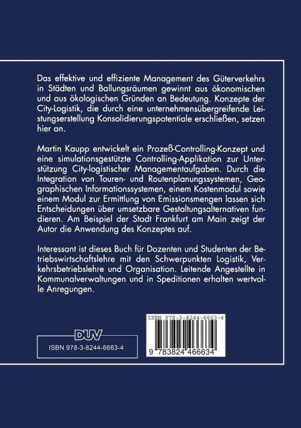 Das effektive und effiziente Management des Güterverkehrs in Städten und Ballungsräumen gewinnt aus ökonomischen und aus ökologischen Gründen an Bedeutung. Konzepte der City-Logistik, die durch eine unternehmensübergreifende Leistungserstellung Konsolidierungspotentiale erschließen, setzen hier an. Martin Kaupp entwickelt ein Prozeß-Controlling-Konzept und eine simulationsgestützte Controlling-Applikation zur Unterstützung City-logistischer Managementaufgaben. Durch die Integration von Touren- und Routenplanungssystemen, Geographischen Informationssystemen, einem Kostenmodul sowie einem Modul zur Ermittlung von Emissionsmengen lassen sich Entscheidungen über umsetzbare Gestaltungsalternativen fundieren. Am Beispiel der Stadt Frankfurt am Main zeigt der Autor die Anwendung des Konzeptes auf. Der Autor hat für diese Arbeit von der Deutschen Verkehrswissenschaftlichen Gesellschaft e. V. den Stiftungspreis 1998 der Deutschen Verkehrs-Bank erhalten.