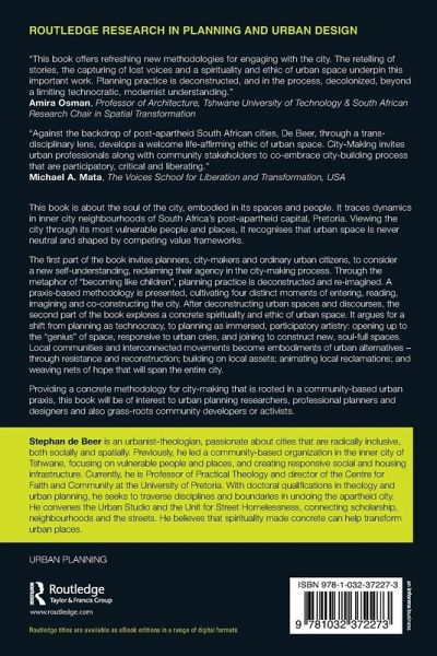 Preface: stories, being storied, re-storying Introduction: why embark on this journey? Part 1: Epistemology - Identity - Methodology 1. "To know as we are known": towards a contextual-narrative planning epistemology 2. "Becoming like children": identity and urban praxis 3. A praxis-approach to city-making: critical moments in the journey Part 2: Doing the city together First Moment: Entering Urban Space 4. Personal and Community Narratives: Berea-Burgers Park and Tshwane's inner city Second Moment: Reading Urban Space 5. Planners, Participation, the Poor 6. What has become of city-making? Between fallacy, deficiency, commodity and conspiracy Third Moment: Imagining Urban Space 7. Discovering an alternative imagination: towards a spirituality of urban space 8. Embodying an alternative imagination: practicing an ethic of urban space Fourth Moment: Constructing urban space 9. Communities and movements of hope: between resistance and reconstruction 10. Fostering an integrated community-based urban praxis Conclusion