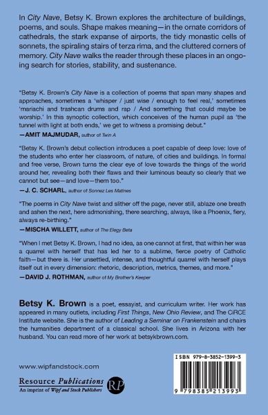 In City Nave, Betsy K. Brown explores the architecture of buildings, poems, and souls. Shape makes meaning--in the ornate corridors of cathedrals, the stark expanse of airports, the tidy monastic cells of sonnets, the spiraling stairs of terza rima, and the cluttered corners of memory. City Nave walks the reader through these places in an ongoing search for stories, stability, and sustenance.