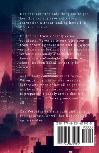 Her past isn't the only thing out to get her. But can she save a city from corruption without landing herself in the line of fire? On the run from deadly crime syndicate, Veronica is one false step from becoming their next victim. When syndicate member and former associate Antonia viciously attacks her, she knows this isn't a fight she can win alone. But can her allies really be trusted? As the body count continues to rise Veronica must find a way to strike back before any more of her allies get hurt. As she rallies her forces, the syndicate is preparing a deadly strike that will seize control of the city once and for all. Can Veronica defy the odds and destroy the Syndicate, or will her last hope go up in smoke?