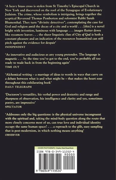 CITY OF GOD begins in mystery: the large brass cross behind the altar of St. Timothy's Episcopal Church in lower Manhattan has disappeared ... and even more mysteriously reappeared on the roof of the Synagogue for Evolutionary Judaism on the Upper West Side. The church's maverick rector and young rabbinical couple who lead the synagogue set about attempting to learn who the vandals are who have committed this strange double act of desecration and to what purpose, but their joint clerical investigation only deepens the mystery. A writer alerted to the story by a newspaper article befriends the priest and the rabbis and find that their struggles with their respective traditions are relevant to the case. In fact, as the narrative advances and the story broadens, more and more people are implicated in what may be the elusive prophecy of a new American culture. Daringly poised at the junction of the sacred and the profane, the book opens into a multi-voiced narrative that incorporates the monumental historical events and predominating ideas of our age.