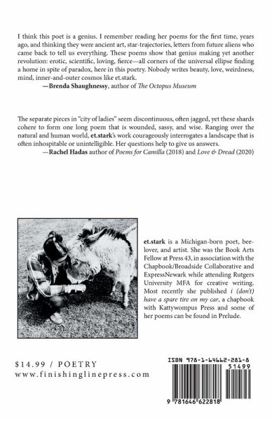 et.stark is a Michigan-born poet, bee-lover, and artist. She was the Book Arts Fellow at Press 43, in association with the Chapbook/Broadside Collaborative and ExpressNewark while attending Rutgers University MFA for creative writing. Most recently she published i (don't) have a spare tire on my car, a chapbook with Kattywompus Press and some of her poems can be found in Prelude.