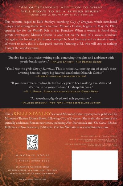 This powerful sequel to Kelli Stanley's scorching City of Dragons, which introduced unique and unforgettable series heroine Miranda Corbie, begins on May 25th, 1940, opening day for the World's Fair. When a woman is found dead, private investigator Miranda Corbie is soon hot on the trail of a vicious murderer. Set against the backdrop of a Europe defeated by Nazi Germany and an America unsure of where to turn, City of Secrets is a fast-paced mystery featuring a P.I. who will stop at nothing to right the world's wrongs.