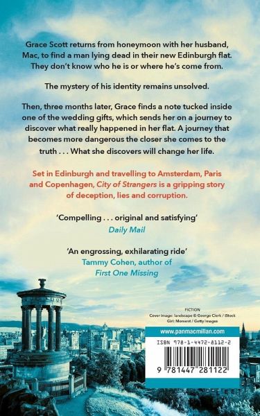 Grace Scott returns from honeymoon with her new husband, Mac, to find a man lying dead in their new Edinburgh flat. They don't know who he is or where he's come from. The mystery of his identity remains unsolved. Then, three months later, Grace finds a note tucked inside one of the wedding gifts which sends her on a journey to discover what really happened in her flat. A journey that becomes more dangerous the closer she comes to the truth . . . What she discovers will change her life. Set in Edinburgh and travelling to Amsterdam, Paris and Copenhagen, CITY OF STRANGERS is a gripping story of deception, lies and corruption.