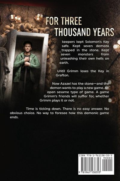 For three thousand years keepers kept Solomon's Key safe. Kept seven demons trapped in the stone. Kept seven monsters from unleashing their own hells on earth. Until Grimm loses the Key in Grafton. Now Azazel has the stone-and the demon wants to play a new game. An open sesame type of game. A game Grimm's friends will suffer for, whether Grimm plays it or not. Time is ticking down. There is no easy answer. No obvious choice. No way to foresee how this demonic game ends.