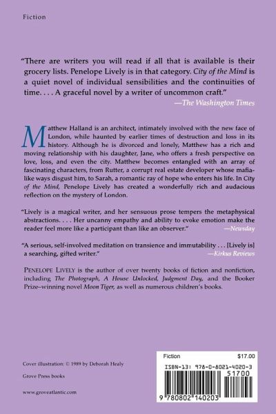 Penelope Lively is one of England's greatest living writers. In City of the Mind, Matthew Halland is an architect intimately involved with the new face of London, while haunted by the destruction and loss in its history. Matthew has a rich and moving relationship with his daughter Jane, and becomes entangled with an array of fascinating characters, from Rutter, a corrupt real estate developer whose Mafia-like ways disgust him, to Sarah, a romantic ray of hope who enters his life. In Lively's most ambitious novel, she has created a wonderfully rich and audacious confrontation with the mystery of London.