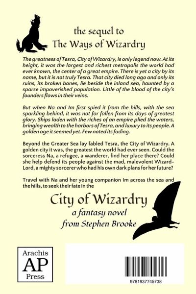 Beyond the Greater Sea lay fabled Tesra, the City of Wizardry. A golden city it was, the greatest the world had ever seen. Could the sorceress Na, a refugee, a wanderer, find her place there? Could she help defend its people against the mad, malevolent Wizard-Lord, a mighty sorcerer who had his own dark plans for her future? Travel with Na and her young companion Im across the sea and the hills, to seek their fate in the City of Wizardry. A fantasy novel by Stephen Brooke and the sequel to The Ways of Wizardry.