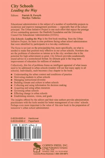 Foreword - Marilyn Tallerico and Patrick B Forsyth Understanding the Urban Context and Conditions of Practice of School Administration - Richard M Englert Motivating Urban Learners - Patrick B Forsyth Managing Instructional Diversity - Linda F Winfield, Ruth Johnson and Joanne B Manning Building Open Climates in Urban Schools - James R Bliss Collecting and Using Information for Problem Solving and Decision Making - Robert O Slater Acquiring and Using Resources - Laurence J Parker Governing Urban Schools - Marilyn Tallerico Effecting Change in Urban Schools - William J Kritek Establishing the Mission, Vision, and Goals - Robert T Stout