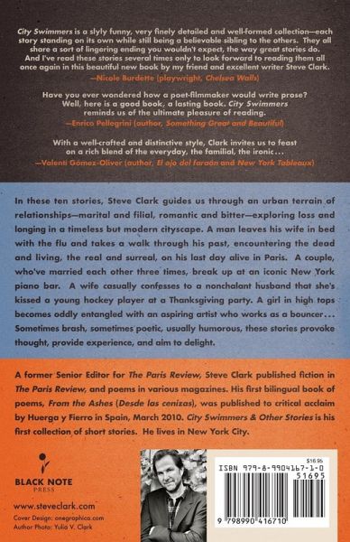 In these ten stories, Steve Clark guides us through an urban terrain of relationships--marital and filial, romantic and bitter--exploring loss and longing in a timeless but modern cityscape. A man leaves his wife in bed with the flu and takes a walk through his past, encountering the dead and living, the real and surreal, on his last day alive in Paris.A couple, who've married each other three times, break up at an iconic New York piano bar. A wife casually confesses to a nonchalant husband that she's kissed a young hockey player at a Thanksgiving party. A girl in high tops becomes oddly entangled with an aspiring artist who works as a bouncer.... Sometimes brash, sometimes poetic, usually humorous, these stories provoke thought, provide experience, and aim to delight.