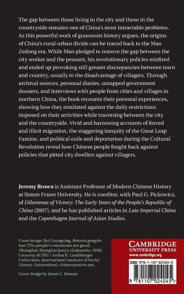 The gap between those living in the city and those in the countryside remains one of China's most intractable problems. This powerful work of grassroots history traces the origins of China's rural-urban divide back to the Mao Zedong era. Harrowing accounts reveal how Chinese people fought back against policies that pitted city dwellers against villagers. The gap between those living in the city and those in the countryside remains one of China's most intractable problems. As this powerful work of grassroots history argues, the origins of China's rural-urban divide can be traced back to the Mao Zedong era. While Mao pledged to remove the gap between the city worker and the peasant, his revolutionary policies misfired and ended up provoking still greater discrepancies between town and country, usually to the disadvantage of villagers. Through archival sources, personal diaries, untapped government dossiers and interviews with people from cities and villages in northern China, the book recounts their personal experiences, showing how they retaliated against the daily restrictions imposed on them while traversing between the city and the countryside. Vivid and harrowing accounts of forced and illicit migration, the staggering inequity of the Great Leap Famine and political exile during the Cultural Revolution reveal how Chinese people fought back against policies that pitted city dwellers against villagers.