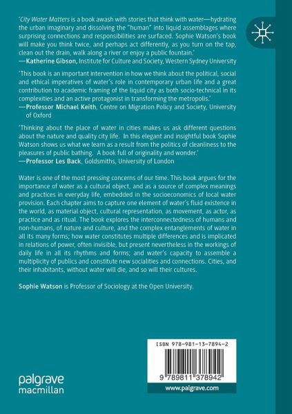 Water is one of the most pressing concerns of our time. This book argues for the importance of water as a cultural object, and as a source of complex meanings and practices in everyday life, embedded in the socio-economics of local water provision. Each chapter aims to capture one element of water's fluid existence in the world, as material object, cultural representation, as movement, as actor, as practice and as ritual. The book explores the interconnectedness of humans and non-humans, of nature and culture, and the complex entanglements of water in all its many forms; how water constitutes multiple differences and is implicated in relations of power, often invisible, but present nevertheless in the workings of daily life in all its rhythms and forms; and water's capacity to assemble a multiplicity of publics and constitute new socialities and connections. Cities, and their inhabitants, without water will die, and so will their cultures.