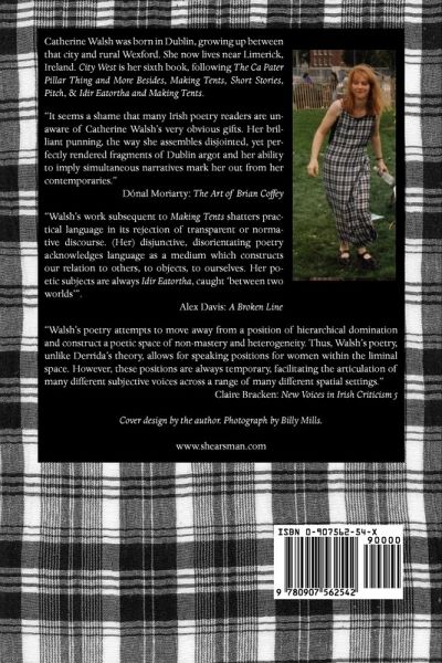 Catherine Walsh is an Irish poet whose work owes more, in formal terms, to American models than it does to the Irish poetic tradition. Her work is experimental, and questing, and operates over large spans. 'City West' is a long poem, the most recent of her works in this vein to be completed. Shearsman Books will publish another long poem, "Optic Verve", in 2006.