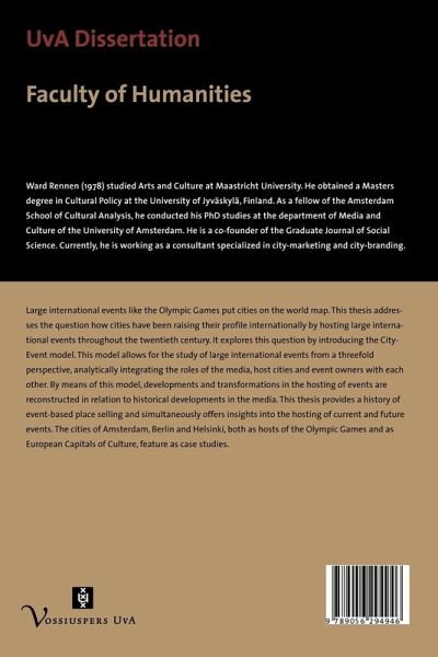 Large international events like the Olympic Games put cities on the world map. CityEvents, place selling in a Media Age addresses the question how cities have been raising their profile internationally by hosting large international events throughout the twentieth century. It explores this question by introducing the CityEvent model. This model allows for the study of large international events from a threefold perspective, analytically integrating the roles of the media, host cities and event owners with each other. By means of this model, developments and transformations in the hosting of events are reconstructed in relation to historical developments in the media. This thesis provides a history of event-based place selling and simultaneously offers insights into the hosting of current and future events. The cities of Amsterdam, Berlin and Helsinki, both as hosts of the Olympic Games and as European Capitals of Culture, feature as case studies.