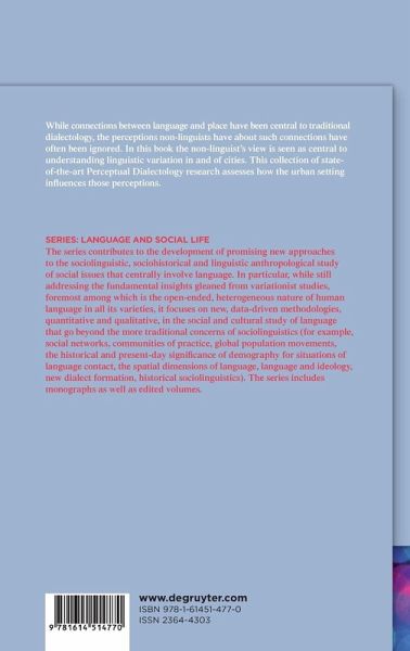 The primary focus of this volume is geared toward an examination of dialect perceptions in and of cities, with an additional goal of presenting empirical, theoretical, and methodological advancements in Perceptual Dialectology. Authors' contributions to the collection examine how the urban setting influences perceptions of linguistic variation and, in thecourse of examining the connections between place and perceptions, explore several interrelated themes of linguistic variation, including the differences in the perception of rural and urban areas, processes of perception and language change, and the relationship between perception and 'reality'.