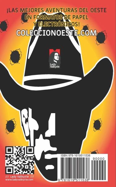 CIUDAD REFUGIO Marcial Lafuente Estefanía Lady Valkyrie Colección Oeste(R) >...Y en el viejo y legendario Oeste, un forastero llegará a la ciudad para imponer su ley contra los grupos que tienen aterrorizada a la población, culminado su propósito usando los mismos métodos de castigo que los criminales... En el salvaje oeste Americano, también conocido como "far west" o "wild west", los vaqueros (cowboys) y los pistoleros (gunman) se repartían las aventuras a partes iguales siendo héroes y villanos, dependiendo de la zona y de la situación en la que se encontraban. Los famosos relatos sobre el viejo o lejano oeste coincidieron con la exploración de los territorios vírgenes del "oeste" Americano. El estilo de vida que tuvieron en el viejo oeste estaba ligado a la explotación de las minas, la crianza de ganado, y el cultivo de la tierra. Las ciudades del viejo oeste eran unas cuantas casas de madera, una tienda para comprar los artículos variados, varias cantinas (saloons), la oficina con cárcel del sheriff, una pequeña escuela, y a veces un local de oración. Era una época de violencia, donde es habitual el uso del plomo y de la cuerda, para solucionar todo tipo de problemas. Y un lugar en el que la justicia del ojo por ojo era la salsa de cada día, y donde el Colt era el instrumento favorito para solucionar problemas. La Colección Oeste(R) le presenta las mejores historias del oeste en Español. Para leer las últimas novedades, visite la página internet de Amazon o nuestra página web localizada en ladyvalkyrie.com(R). También están a la venta otras colecciones del oeste en Español de los grandes autores como FRANK DUGGAN, JOHN MASTERSON, LEE SEBASTIAN, J.J. MONTANA, SAMUEL WILCOX, ZANE GREY, B.M. BOWER, MARCIAL LAFUENTE ESTEFANÍA, MAX BRAND, CARLOS CLEVELAND, y de muchos otros más. Visítenos en ColeccionOeste.com(R) para ver todas las últimas novedades. Lady Valkyrie también dispone de un amplio catálogo de publicaciones en muchísimos géneros desde las aventuras del oeste, los clásicos, los grandes de la literatura, la novela negra, cuentos escolares, la novela gótica, libros de ayuda, libros religiosos, aprendizaje de idiomas, y muchos otros temas para todos los gustos y edades. LadyValkyrie.com(R)