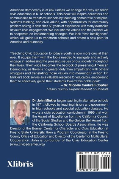 American democracy is at risk unless we change the way we teach civic education in K-12 schools. This book will inspire educators and communities to transform schools by teaching democratic principles, systems thinking, and civic values, with opportunities for community problem-solvng. It describes 53 years of experience with many examples of youth civic engagement. We lack shared values and the political will to cooperate on implementing changes. We lack "civic intelligence," which will guide us to transform schools and create a new path for America and humanity.