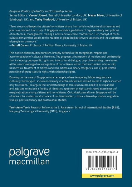 Drawing on the case of Singapore as an illustrative example, where temporary labour migrants are culturally stereotyped, socioeconomically disenfranchised and denied access to rights accorded only to citizens, Teo argues that understandings of multiculturalism need to be expanded and adjusted to include a fluidity of identities, spectrum of rights and shared experiences of marginalisation among citizens and non-citizens. Civic Multiculturalism in Singapore will be of interest to students and scholars of multiculturalism, critical citizenship studies, migration studies, political theory and postcolonial studies.
