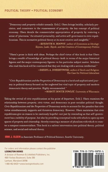 Taking the revival of civic republicanism as his point of departure, Erik Olsen examines the relationship between property, civic virtue, and democracy in post-socialist political thought. Steering a course between the crass materialism that post-socialists criticize and their own post-materialist perspective, Olsen outlines a theory of democratic stakeholding in which citizens have rights of inhabitation in their commonwealth.