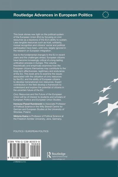 This book shines new light on the political system of the European Union (EU) by focusing on civic resources as a keystone of the EU's ability to sustain. Less-tangible resources such as trust, solidarity, mutual recognition and citizens' social and political participation have been, until now, largely ignored in the research on European integration.