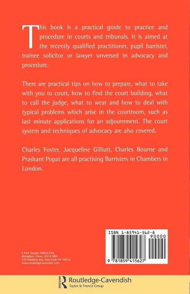 This book is a practical guide to practice and procedure in courts and tribunals. It is aimed at the recently qualified practitioner,pupil barristers, trainee solicitors, or lawyers unversed in advocacy and procedure. It provides a guide to applications in most areas of the law, with brief discussions of the relevant law, rules of procedure and practical tips. The applications covered are those which practitioners are likely to encounter in their first years of practice. In addition, each chapter attempts to anticipate likely pitfalls, with suggested solutions. The court system and techniques of advocacy are also covered. This is not a legal textbook, and provides no substitute for legal research. It is designed to be starting point for advocates faced with an unfamiliar task.