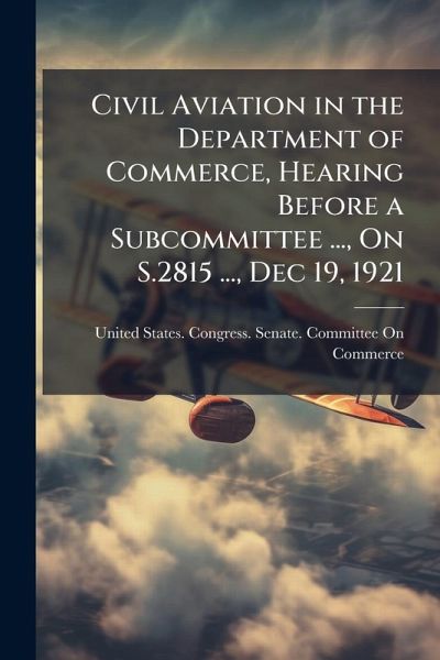 This is a historical record of a hearing before a subcommittee of the United States Senate Committee on Commerce, held on December 19, 1921. The hearing focused on S.2815, a bill concerning "Civil Aviation in the Department of Commerce." This document provides insights into the early stages of government regulation and promotion of civil aviation in the United States. The transcript offers valuable primary source material for researchers and historians interested in the development of aviation policy, the role of the Department of Commerce, and the legislative process surrounding the emerging aviation industry in the post-World War I era. It captures the concerns, debates, and perspectives of senators and stakeholders as they grappled with the challenges and opportunities presented by the rapid growth of air travel and transportation. This work has been selected by scholars as being culturally important, and is part of the knowledge base of civilization as we know it. This work was reproduced from the original artifact, and remains as true to the original work as possible. Therefore, you will see the original copyright references, library stamps (as most of these works have been housed in our most important libraries around the world), and other notations in the work. This work is in the public domain in the United States of America, and possibly other nations. Within the United States, you may freely copy and distribute this work, as no entity (individual or corporate) has a copyright on the body of the work. As a reproduction of a historical artifact, this work may contain missing or blurred pages, poor pictures, errant marks, etc. Scholars believe, and we concur, that this work is important enough to be preserved, reproduced, and made generally available to the public. We appreciate your support of the preservation process, and thank you for being an important part of keeping this knowledge alive and relevant.