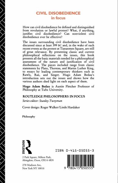 The issues surrounding civil disobedience have been discussed since at least 399 BC and, in the wake of such recent events as the protest at Tiananmen Square, are still of great relevance. By presenting classic and current philosophical reflections on the issues, this book presents all the basic materials needed for a philosophical assessment of the nature and justification of civil disobedience. The pieces included range from classic essays by leading contemporary thinkers such as Rawls, Raz and Singer. Hugo Adam Bedau's introduction sets out the issues and shows how the various authors shed light on each aspect of them.