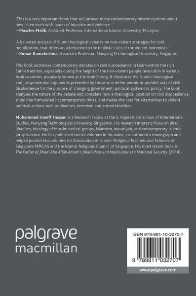 This book addresses contemporary debates on civil disobedience in Islam within the rich Sunni tradition, especially during the height of the non-violent people revolution in various Arab countries, popularly known as the Arab Spring. It illustrates the Islamic theological and jurisprudential arguments presented by those who either permit or prohibit acts of civil disobedience for the purpose of changing government, political systems or policy. The book analyses the nature of the debate and considers how a theological position on civil disobedience should be formulated in contemporary time, and makes the case for alternatives to violent political action such as jihadism, terrorism and armed rebellion.