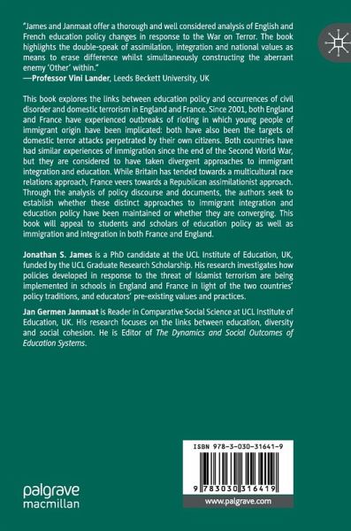 This book explores the links between education policy and occurrences of civil disorder and domestic terrorism in England and France. Since 2001, both England and France have experienced outbreaks of rioting in which young people of immigrant origin have been implicated: both have also been the targets of domestic terror attacks perpetrated by their own citizens. Both countries have had similar experiences of immigration since the end of the Second World War, but they are considered to have taken divergent approaches to immigrant integration and education. While Britain has tended towards a multicultural race relations approach, France veers towards a Republican assimilationist approach. Through the analysis of policy discourse and documents, the authors seek to establish whether these distinct approaches to immigrant integration and education policy have been maintained or whether they are converging. This book will appeal to students and scholars of education policy as well as immigration and integration in both France and England.