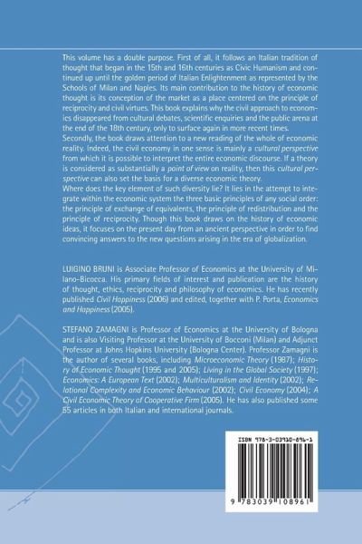 This volume has a double purpose. First of all, it follows an Italian tradition of thought that began in the 15th and 16th centuries as Civic Humanism and continued up until the golden period of Italian Enlightenment as represented by the Schools of Milan and Naples. Its main contribution to the history of economic thought is its conception of the market as a place centered on the principle of reciprocity and civil virtues. This book explains why the civil approach to economics disappeared from cultural debates, scientific enquiries and the public arena at the end of the 18th century, only to surface again in more recent times.