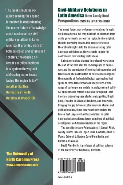 The armed forces may no longer rule nations throughout Latin America, but they continue to influence democratic governments across the region. In nine original, thought-provoking essays, this book offers fresh theoretical insights into the dilemmas facing Latin American politicians as they struggle to gain full control over their military institutions. Latin America has changed in profound ways since the end of the Cold War, the re-emergence of democracy, and the ascendancy of free-market economies and trade blocs. The contributors to this volume recognize the necessity of finding intellectual approaches that speak to these transformations. They utilize a wide range of contemporary models to analyze recent political and economic reform in nations throughout Latin America, presenting case studies on Argentina, Brazil, Chile, Ecuador, El Salvador, Honduras, and Venezuela. Bridging the gap between Latin American studies and political science, these essays not only explore the forces that shape civil-military relations in Latin America but also address larger questions of political development and democratization in the region. The contributors are Felipe Agüero, J. Samuel Fitch, Wendy Hunter, Ernesto López, Brian Loveman, David R. Mares, Deborah L. Norden, David Pion-Berlin, and Harold A. Trinkunas. Latin American Studies/Political Science
