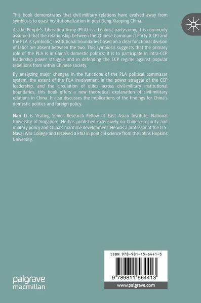 This book demonstrates that civil-military relations have evolved beyond symbiosis to quasi-institutionalization in post-Deng Xiaoping China.