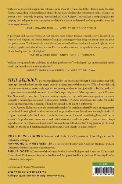 "An important concept that scholars have used to help understand the relationship between religion and the American nation and polity has been 'civil religion.' A seminal article by Robert Bellah appeared just over fifty years ago. A multi-disciplinary array of scholars in this volume assess the concept's origins, history, and continued usefulness. In a period of great political polarization, considering whether there is hope for a unifying value and belief system seems more important than ever"--