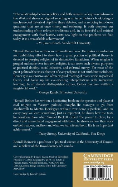 Civil Religion offers philosophical commentaries on more than twenty thinkers stretching from the sixteenth to the twentieth century. It examines four important traditions within the history of modern political philosophy. The civil religion tradition, principally defined by Machiavelli, Hobbes and Rousseau, seeks to domesticate religion by putting it solidly in the service of politics. The liberal tradition pursues an alternative strategy of domestication by seeking to put as much distance as possible between religion and politics. Modern theocracy is a militant reaction against liberalism, reversing the relationship of subordination asserted by civil religion. Finally, a fourth tradition is defined by Nietzsche and Heidegger. Aspects of their thought are not just modern, but hyper-modern, yet they manifest an often-hysterical reaction against liberalism that is fundamentally shared with the theocratic tradition. Together, these four traditions compose a vital dialogue that carries us to the heart of political philosophy itself.