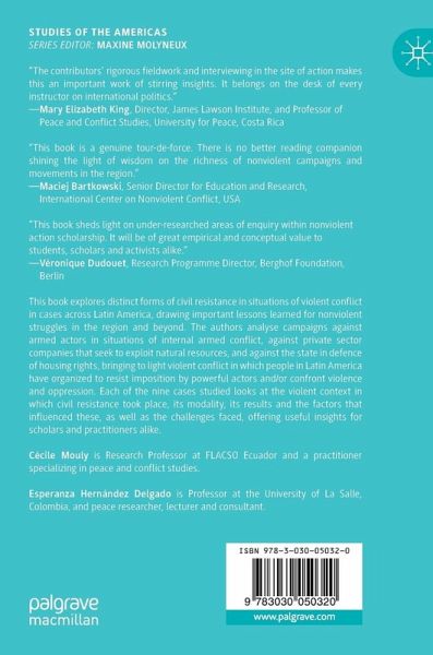 This book explores distinct forms of civil resistance in situations of violent conflict in cases across Latin America, drawing important lessons learned for nonviolent struggles in the region and beyond. The authors analyse campaigns against armed actors in situations of internal armed conflict, against private sector companies that seek to exploit natural resources, and against the state in defence of housing rights, to cite only some scenarios of violent conflict in which people in Latin America have organized to resist imposition by powerful actors and/or confront violence and oppression. Each of the nine cases studied looks at the violent context in which civil resistance took place, its modality, its results and the factors that influenced these, as well as the challenges faced, offering useful insights for scholars and practitioners alike.