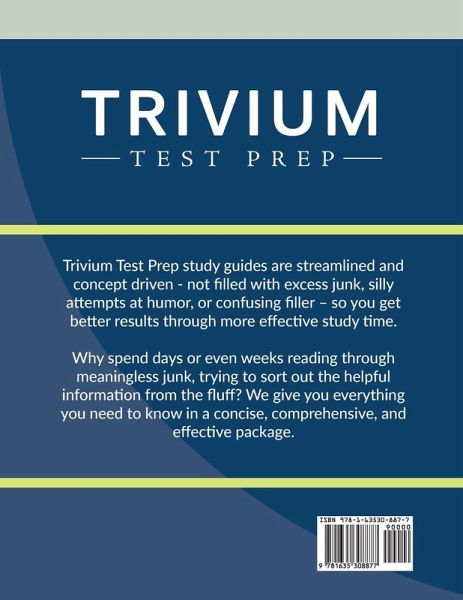 Updated for 2021, Trivium Test Prep's unofficial, NEW Civil Service Exam Study Guide 2021-2022: Preparation Book with Practice Test Questions for the Civil Service Exams (Police Officer, Firefighter, Clerical, and More) isn't your typical exam prep! Because we know your time is limited, we've created a product that goes beyond what most study guides offer. With Civil Service Exam Study Guide 2021-2022, you'll benefit from a quick but total review of everything tested on the exam with current, real examples, graphics, and information. These easy to use materials give you that extra edge you need to pass the first time. Trivium Test Prep is not affiliated with or endorsed by any testing organization and does not own or claim ownership of any trademarks. All test names (and their acronyms) are trademarks of their respective owners. This study guide is for general information and does not claim endorsement by any third party. Trivium Test Prep's Civil Service Exam Study Guide 2021-2022 offers: * A full review of what you need to know for the civil service exam * Practice questions for you to practice and improve * Test tips to help you score higher Trivium Test Prep's Civil Service Exam Study Guide 2021-2022 covers: * Reading * Writing * Verbal and Reasoning Skills * Mathematics * Clerical Skills ...and includes a FULL practice test! About Trivium Test Prep Trivium Test Prep is an independent test prep study guide company that produces and prints all of our books right here in the USA. Our dedicated professionals know how people think and learn, and have created our test prep products based on what research has shown to be the fastest, easiest, and most effective way to prepare for the exam. Unlike other study guides that are stamped out in a generic fashion, our study materials are specifically tailored for your exact needs. We offer a comprehensive set of guides guaranteed to raise your score for exams from every step of your education; from high school, to college or the military, to graduate school. Let our study guides guide you along the path to the professional career of your dreams!