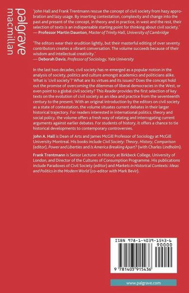 'Frank Trentmann and John Hall rescue the concept of civil society from hazy approbration and lazy usage. By inserting contestation, complexity and change into the past and present of the concept, in theory and in practice, in west and the rest, their selection of texts is an indispensable starting point for thinking about civil society.' - Professor Martin Daunton, Master of Trinity Hall, University of Cambridge