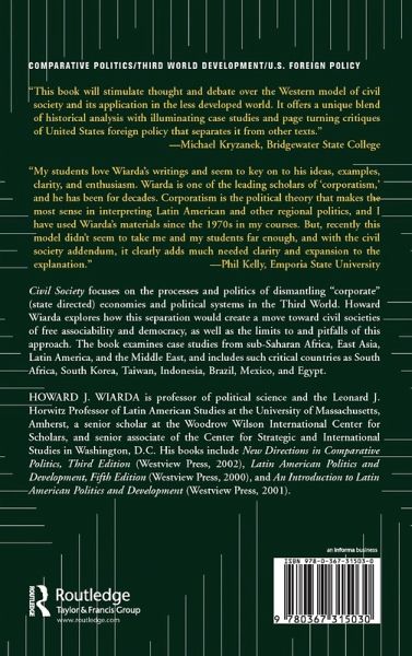 PART 1: INTRODUCTION 1 Civil Society Democracy and Corporatism in the Third World PART II: THEORY AND CONCEPTS 2 Civil Society: History and Meaning(s) 3 Corporatist Systems of Civil Society PART III: CASE STUDIES IN CIVIL SOCIETY 4 Sub-Saharan Africa 5 East Asia 6 Latin America 7 The Middle East and Islamic Society PART IV: CONCLUSION 8 Is Civil Society Exportable?: The American Model and Third World Development