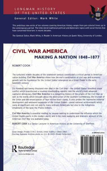 The turbulent middle decades of the nineteenth century constituted the critical period in American nation building. "Civil War America" shows that the era s combination of civil war and economic growth laid the foundation for the United States emergence as a Great Power in the early twentieth century. Six hundred and twenty thousand men died in the Civil War - the United States bloodiest single conflict which transformed a troubled slaveholding republic into the world s most advanced capitalist democracy. "Civil War America" is a compelling history of the origins of the Civil War as well as the events which brought about the destruction of the southern Confederacy, the triumph of the Union and the emancipation of four million black slaves. It also probes the impressive material development and westward expansion of the United States - grand national achievements which came at significant cost not only to many ordinary Americans but also to the indigenous inhabitants of the land, the Plains Indians. " Civil War America"" is essential reading for anyone seeking to understand the influence which the United States exerts in the modern world, and is the most sweeping and dramatic account of the American Civil War era on the market today. Robert Cook is a Senior Lecturer in American History at the University of Sheffield.