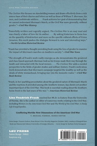 The Civilian War explores home front encounters between elite Confederate women and Union soldiers during Sherman's March, a campaign that put women at the center of a Union army operation for the first time. Ordered to crush the morale as well as the military infrastructure of the Confederacy, Sherman and his army increasingly targeted wealthy civilians in their progress through Georgia and the Carolinas. To drive home the full extent of northern domination over the South, Sherman's soldiers besieged the female domain-going into bedrooms and parlors, seizing correspondence and personal treasures-with the aim of insulting and humiliating upper-class southern women. These efforts blurred the distinction between home front and warfront, creating confrontations in the domestic sphere as a part of the war itself. Historian Lisa Tendrich Frank argues that ideas about women and their roles in war shaped the expectations of both Union soldiers and Confederate civilians. Sherman recognized that slaveholding Confederate women played a vital part in sustaining the Rebel efforts, and accordingly he treated them as wartime opponents, targeting their markers of respectability and privilege. Although Sherman intended his efforts to demoralize the civilian population, Frank suggests that his strategies frequently had the opposite effect. Confederate women accepted the plunder of food and munitions as an inevitable part of the conflict, but they considered Union invasion of their private spaces an unforgivable and unreasonable transgression. These intrusions strengthened the resolve of many southern women to continue the fight against the Union and its most despised general. Seamlessly merging gender studies and military history, The Civilian War illuminates the distinction between the damage inflicted on the battlefield and the offenses that occurred in the domestic realm during the Civil War. Ultimately, Frank's research demonstrates why many women in the Lower South remained steadfastly committed to the Confederate cause even when their prospects seemed most dim.