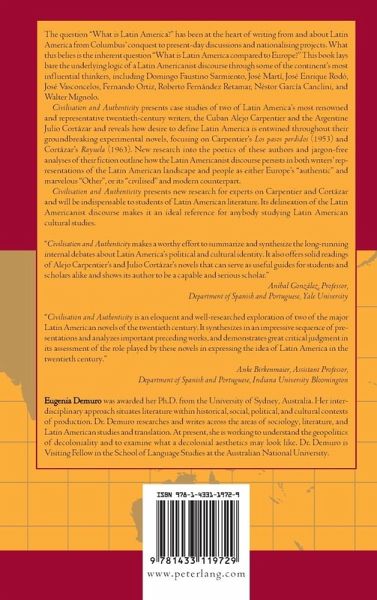 «'Civilisation and Authenticity' makes a worthy effort to summarize and synthesize the long-running internal debates about Latin America's political and cultural identity. It also offers solid readings of Alejo Carpentier's and Julio Cortázar's novels that can serve as useful guides for students and scholars alike and shows its author to be a capable and serious scholar.» (Aníbal González, Professor, Department of Spanish and Portuguese, Yale University)