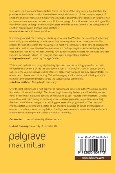Part One: The Book.- 1. Informalisation: An Introduction; Cas Wouters.- 2. Informalisation and Evolution: Four Phases in the Development of Steering Codes; Cas Wouters.- 3. Informalisation and Emancipation of Lust and Love: Integration of Sexualisation and Eroticisation Since the 1880s; Cas Wouters.- 4. Informalisation of Rituals in Dying and Mourning: Changes in the We-I Balance; Cas Wouters.- 5. Informalisation, Functional Democratisation and Globalisation; Cas Wouters.- 6. Universally Applicable Criteria for Analysing Social and Psychic Processes: Nine Tension Balances, One Triad; Cas Wouters.- Part Two: The Selection.- 7. Informalisation Through the Lens: Black & White and the Development of Photography as Art; Jonathan Fletcher.- 8.- Informalisation and Brutalisation: Jihadism as a Part-Process of Global of Integration and Disintegration Processes; Michael Dunning.- 9. Informalisation and Sport: The Case of Jogging/Running in the USA (1960-2000); Raúl Sánchez-García.- 10. Informalisation and Integration Conflicts: The Two-Faced Reception of Migrants in the Netherlands; Arjan Post.- 11. Formalisation and Informalisation of Meeting Manners; Wilbert van Vree.- 12. Informalisation Sociological Theory and Social Diagnosis; Richard Kilminster.
