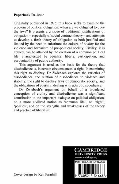 Originally published in 1975, this book seeks to examine the problem of political obligation: when are we obligated to obey the laws? It attempts to develop a fresh theory of obligation as both justified and limited by the need to substitute the culture of civility for the violence and barbarism of pre-political society.