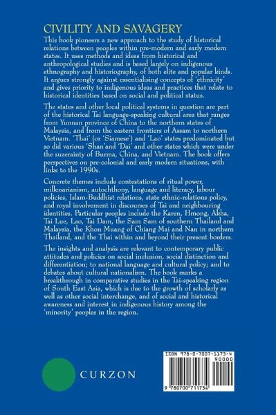 Preface PART I Inter-Ethnic Relations in Tai Political Domains 1. Introduction to Civility and Savagery PART II Internal Histories and Comparisons Introduction 2. The Others Within: Travel and Ethno-Spatial Differentiation of Siamese Subjects 1885-1910 3. The Differential Integration of Hill People into the Thai State 4. Ritual Relations and Identity: Hmong and Others 5. The Politics of Cosmology: An Introduction to Millenarianism and Ethnicity among Highland Minorities of Northern Thailand 6. Akha Internal History: Marginalization and the Ethnic Alliance System PART III Thai-Malay Borderlands Introduction 7. The Historical Development of Thai-Speaking Muslim Communities in Southern Thailand and Northern Malaysia 8. Emergence and Transformation of Peripheral Ethnicity: Sam Sam on the Thai-Malaysian Border PART IV Laos: A Poly-Ethnic State Introduction 9. A Princess in a People's Republic: A New Phase in the Construction of the Lao Nation 10. Nationalities Policy in Modern Laos 11. Tribal Politics in Laos 12. Tai-Ization: Ethnic Change in Northern Indo-China PART V Lanna and Neighbours Introduction 13. Autochthony and the Inthakhin Cult of Chiang Mai 14. Tai Lue of Sipsongpanna and Miiang Nan in the Nineteenth-Century 15. Ethnic Heterogeneity and Elephants in Nineteenth-Century Lanna Statecraft PART VI Postscript 16. A New Stage in Tai Regional Studies: The Challenge of Local Histories