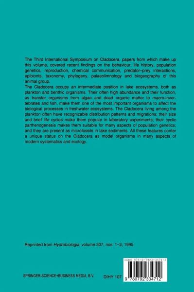 The Third International Symposium on Cladocera, papers from which make up this volume, covered recent findings on the behaviour, life history, population genetics, reproduction, chemical communication, predator-prey interactions, epibionts, taxonomy, phylogeny, palaeolimnology and biogeography of this animal group.