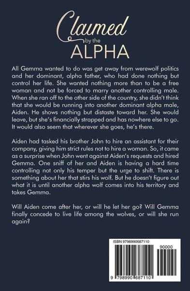 All Gemma wanted to do was get away from werewolf politics and her dominant, alpha father, who had done nothing but control her life. She wanted nothing more than to be a free woman and not be forced to marry another controlling male. When she ran off to the other side of the country, she didn't think that she would be running into another dominant alpha male, Aiden. He shows nothing but distaste toward her. She would leave, but she's financially strapped and has nowhere else to go. It would also seem that wherever she goes, he's there. Aiden had tasked his brother John to hire an assistant for their company, giving him strict rules not to hire a woman. So, it came as a surprise when John went against Aiden's requests and hired Gemma. One sniff of her and Aiden is having a hard time controlling not only his temper, but the urge to shift. There is something about her that stirs his wolf. But he doesn't figure out what it is until another alpha wolf comes into his territory and takes Gemma. Will Aiden come after her, or will he let her go? Will Gemma finally concede to live life among the wolves, or will she run again? Publisher's Note: Claimed by the Alpha is a stand-alone book in the Sanctuary Series. They can be read in any order. They are also HEA guaranteed, no cheating. This book contains a hot, demanding alpha wolf with a penchant for protecting and dominating his female. If such material offends you, do not buy this book.